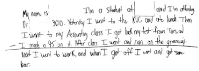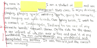 Δείτε ακόμη ένα παράδειγμα, όπου φαίνονται και οι γραμμές που θα πρέπει να τραβήξετε στην αριστερή πλευρά του σώματος κειμένου προκειμένου να εφαρμόσετε τον 1ο κανόνα. Το ψεύδος είναι στο τέλος, υπογραμμισμένο.
