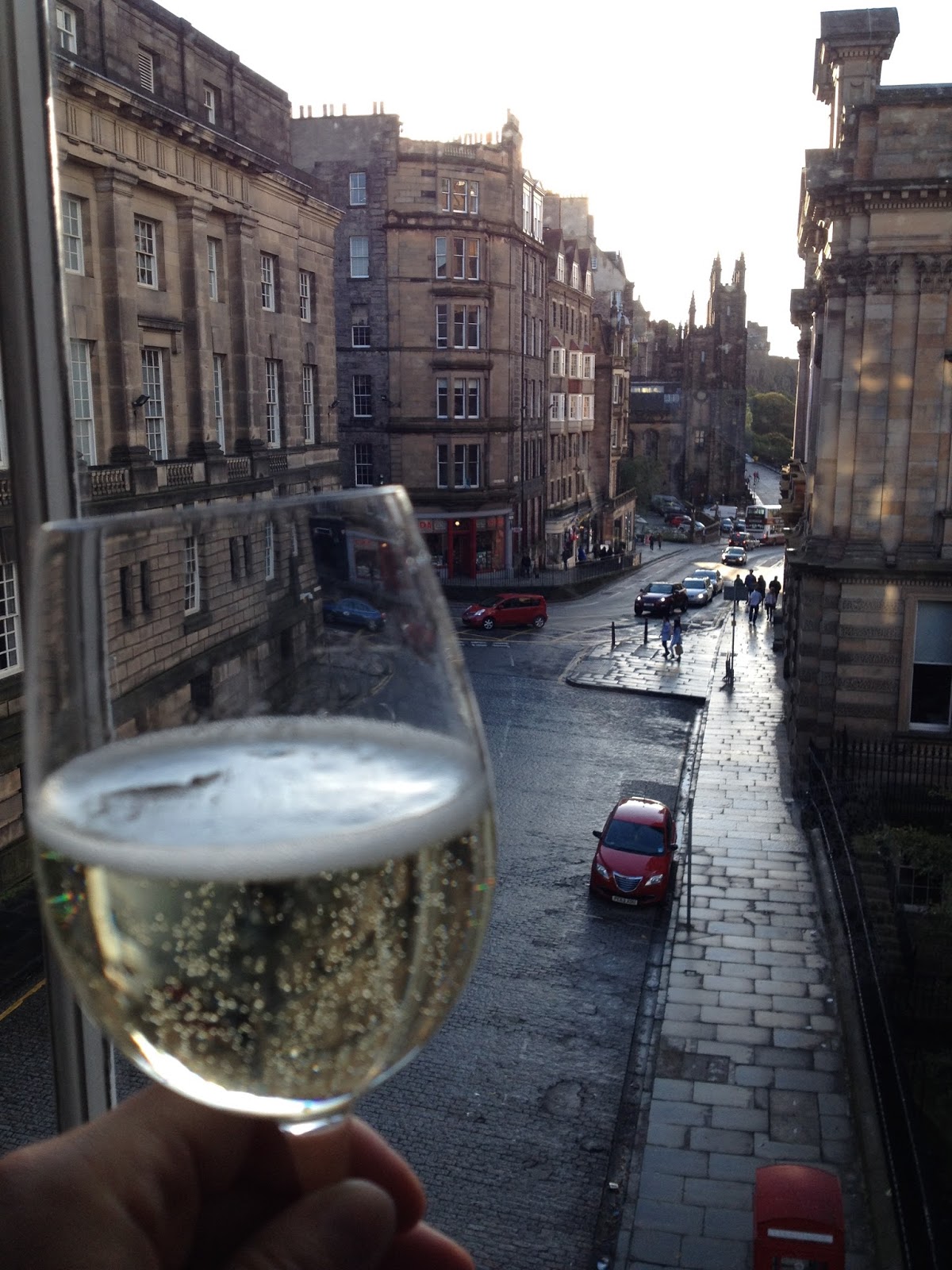 View of Edinburgh from my room--plus a little bubbly :)© 2016 Eliza KnightExcerpt: