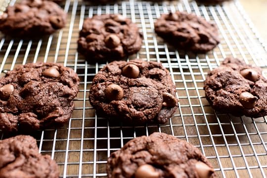 These are just like my Chocolate Chocolate White Chocolate Chip Cookies, but they’re all chocolate, all the time. There’s absolutely no respite from the chocolate with these cookies…and of course, that’s just the kind of situation a chocoholic wants to be in.