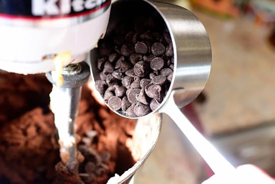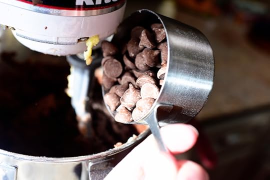 For these cookies, I’m doing a combo of semi-sweet chips…