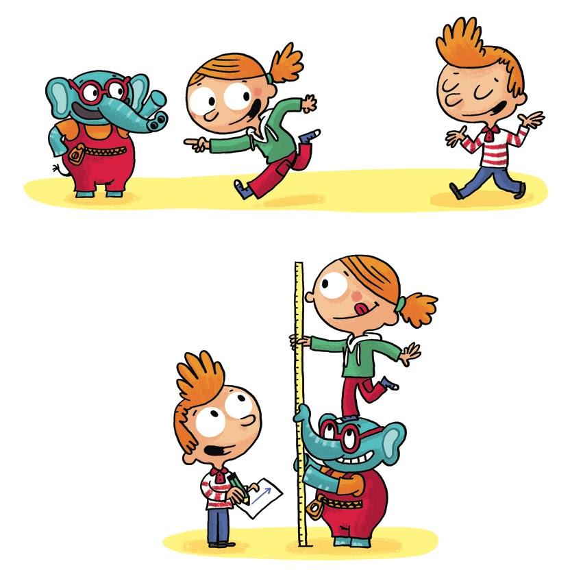 Non, ce qu'on m'a demandé, c'est imaginer de courtes histoires sous forme de petites BD, pour aborder chaque notion du programme de CP. D'inventer des petits personnages, une mascotte et un univers pour motiver les enfants à entrer dans une notion. Une méthode qui propose de placer les concepts dans un contexte narratif : l'enfant, au cours de la méthode, s'attache aux personnages, suit leurs aventures et on espère, progresse, comprend les enjeux.
