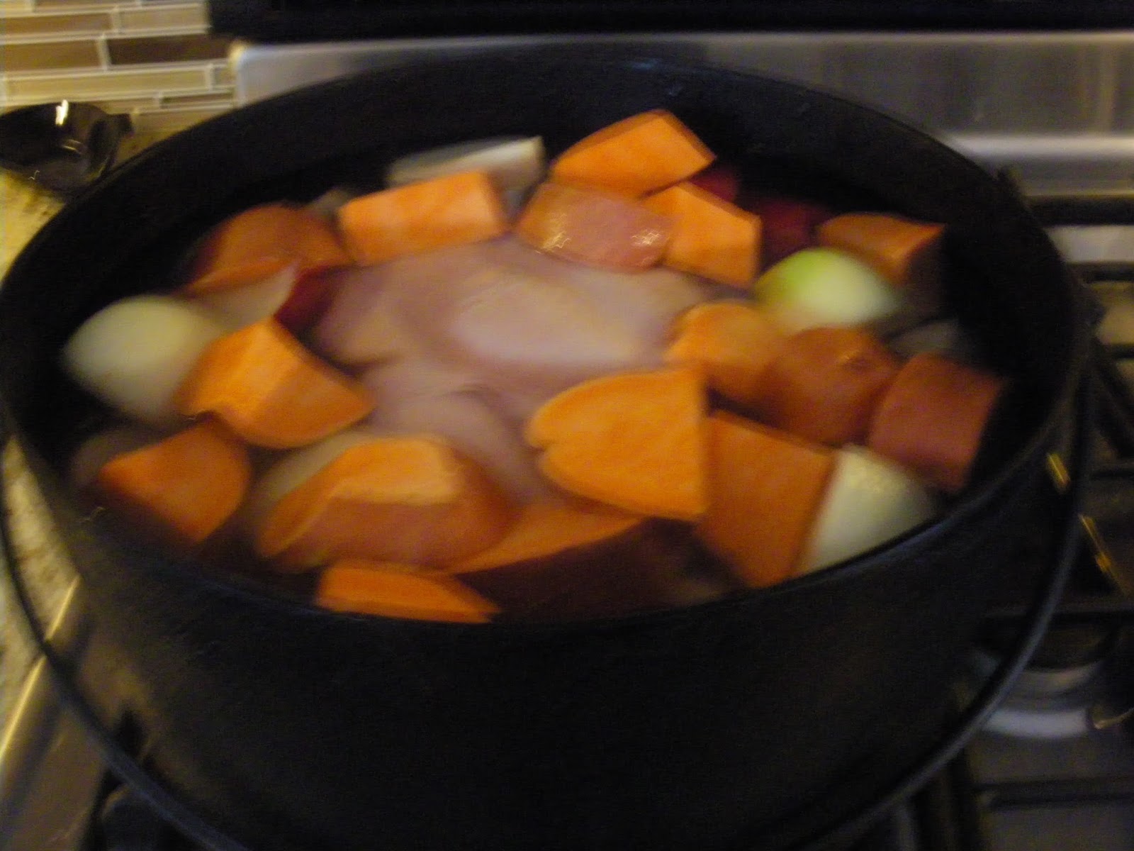 Every time I look at the very old cast iron Dutch oven I have from my mother, I think of that story. We usually make stews in it, but we do sometimes make soup too. It’s quite magic: all it takes is an onion or three,