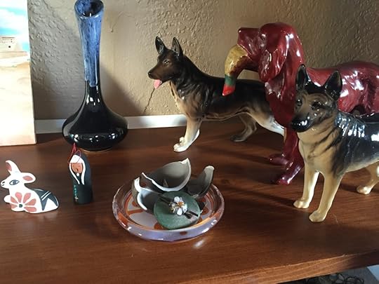 Two weeks ago, the pot went flying off the shelving unit in my office. Lately this hasn’t been unusual because our new dog Lilly rounds corners quickly and sends many items wobbly. However, it was a human who knocked it over. My friend who accidentally knocked it over felt really bad.