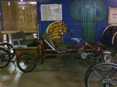 My friend took me to the awesomest place to buy a bike today. I'd been hoping to get the kid a new bike. The old one was her first bike, far beneath her now especially in its purple and pink. So since last year's adventures with my bike informed me that I didn't know half as much about bikes as I thought I did, I enlisted my friend Rochelle. She has two bikes that live in her dining room and see far more use than her dining room table does.