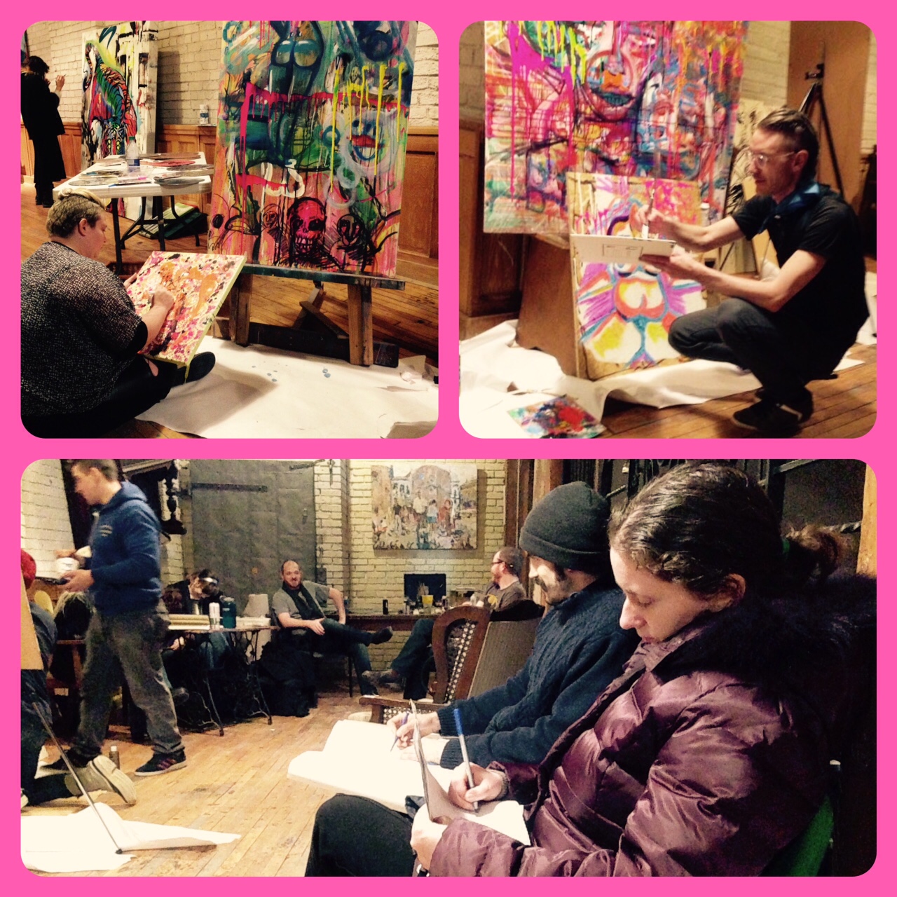 I spent a couple of hours at GMB Chomichuk's studio tonight as part of his monthly Co-Laboratory.The Co-Lab, as I will henceforth call it, is a space for artists of every stripe to create in the same space. There are several spots for bit paint/drawing collaborations, lots of places to sit, and even models if anyone feels like sketching.