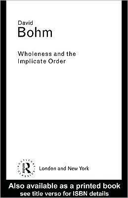 Wholeness and the Implicate Order proposes a new model of reality. Professor Bohm argues that if we are guided by a self-willed view, we will perceive and experience the world as fragmented. Such a view is false because it is based on our mistaking the content of our thought for a description of the world as it is. Bohm introduces the notion of the implicate order in which any element contains enfolded within itself the totality of the universe--his concept of totality (wholeness) includes both matter and consciousness. The central underlying theme is the unbroken wholeness of the totality of existence as an undivided flowing movement without barriers. The principal feature of the mechanical order is that the world is regarded as constituted entities which are outside of each other-- the order of the universe is mechanistic. No coherent concept of an independently existent particle is possible, neither one in which the particle ould be n extended body, nor one in which it would be a dimensionless point. The non-local, non-causal nature of the relationships of elements distant from one another violates the requirements of separateness and independence of fundamental constituents that is basic to any mechanistic approach (pp. 175-6). The hologram maks a photographic record of the interference pattern of light waves that come off an object. The key new feature of this record is that each part contains information about the whole object, so there is no point-to-point correspondence of object and recorded image. The form and structure of the entire object may be said to be enfolded within each region of the photographic record. A new notion of order is involved here, called the implicate order from a Latin root meaning 'to enfold' or 'fold inward.' Everything is enfolded into everything in the implicate order. The hologram is a static record of this order. In the explicate order, things are unfolded as each thing lies only in is own particular region of space and time, and outside the regions belonging to other things. This enfoldment and unfoldment take place in the movement of the electromagnetic field, and other fields such as the electronic, protonic, sound waves, etc. The totality of the movement of enfoldment and unfoldment is holomovement. In the holomovement, the overall necessity is holonomy, but its laws are no longer mechanical. The implicate order has its ground in the holomovement which is vast, rich, and in a state of unending flux of enfoldment and unfoldment. The implicate order extends into a multidimensional reality. Movement is comprehended in terms of a series of inter-penetrating and intermingling elements in different degrees of enfoldment; all present together.