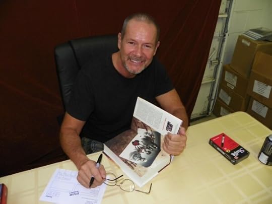 "Business was booming among this demographic. He saw blue,red and purple flames tattooed on bald heads. He saw faces transformed into Escher artwork. He saw the calligraphy of a hundred hues written across shoulders and chest and breasts and stomachs, each man and woman their own Book of Life. Here, dancing and capering, was a bearded figure whose original colt of birthflesh had disappeared beneath the new skin f blue ink and black proclamations; there whirling 'round and 'round was a topless female with red pigtails and an intricate painting of a multicoloured dragon clinging to her back, its arms extending down across her shoulders and the black tails of its claws circling her nipples. Technicolor serpents coiled around throats, arms, thighs and calves. Flowers grew from navels and foreheads were crowned by shooting stars and pentagrams. Marilyn Monroe, Charlie Chaplin, Alice Cooper and Hitler pushed their faces forth from sweat-glistening meat. And there in the crowd...and there...and over there....stood in this blur of constant motion the few motionless figures who stood staring at the performers on the stage with eyes in a visage no longer recognisable as being earthly; they were creations from another realm, a strange and frightening beauty of human matter craved upon and recoloured by needles both the insane and awesome. The was a face made of layered scales like the gray hide of a desert lizard; there was a face created from a dozen interlocking other faces like a grotesque human jigsaw puzzle; and there was the face that was none at all, but rather a pair of eyes, nostrils and a mouth suspended against a bruised-coloured, crackled parchment of indecipherable markings. It seemed to Nomad to be a document of rage."