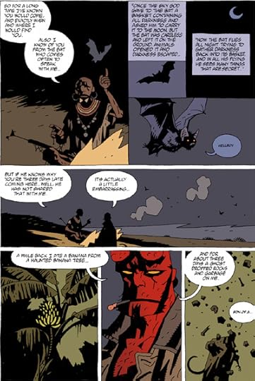 Also, Hellboy tells of the time he ate "a banana from a haunted banana tree" and a ghost "hurled garbage" at him. Which, while an actual Cambodian folk tale, is made so very amusing from the fittingly dry and deadpan reaction it elicits from Hellboy. "Oh, geez," indeed.