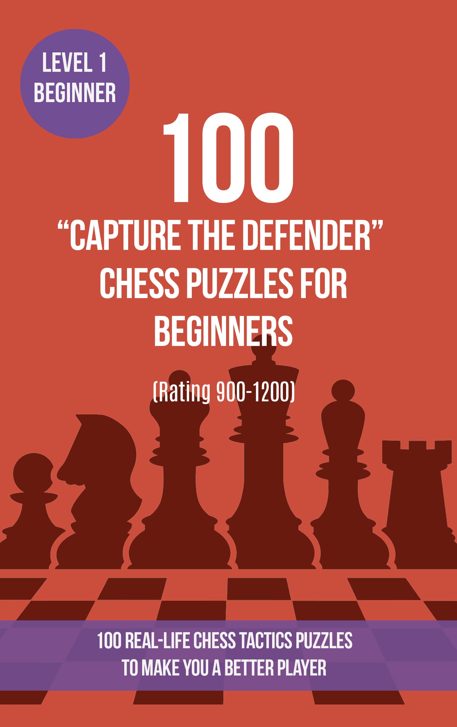 In 100 “Capture The Defender” Chess Puzzles for Beginners (Rating 900-1200) you’ll solve 100 chess strategy challenges that teach you how to remove a critical defending piece to leave a more valuable piece free for capture on your next move.