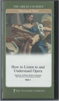 I think I have listened to exactly one opera in my life, when one came to the University of South Florida one Saturday night when I was a graduate student and I went to it because the price was low and enjoyed it. I also tried to go once to The Girl With The Golden Gun but I couldn't fit it into my schedule. That is the extent of my own personal familiarity with opera, except for occasions where friends of mine have sent me what they consider to be fantastic renditions of "Queen Of The Night" or something of that nature. I consider myself therefore on the fringe of the sort of audience that the professor, noted music professor Robert Greenberg, is trying to reach. I am familiar with opera, have a mild interest in it as long as the quality is good enough, and am not implacably hostile to it as an art that is worth being enjoyed as part of one's cultural offerings. And that is really all that is necessary to appreciate a course like this one, at least a mild interest in opera and its history and a willingness to listen to and better understand good opera.