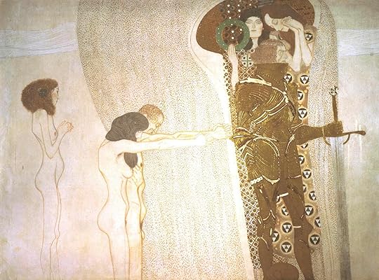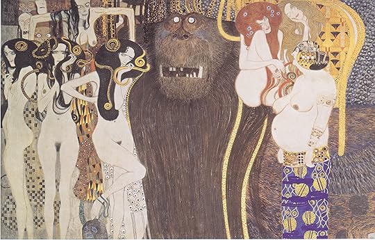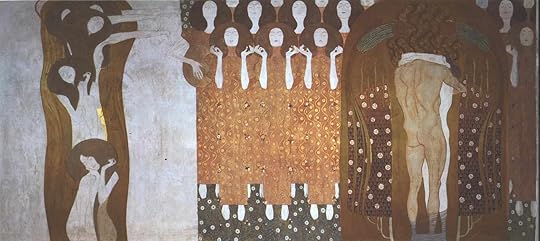 Art (symbolized by Poetry) finally leads the way to the Heavenly Choir intoning “Freude schöner Gotterfunken” and mankind is saved in the “Kuss der ganzen Welt” (both lines from Schiller’s “Ode an die Freude”).