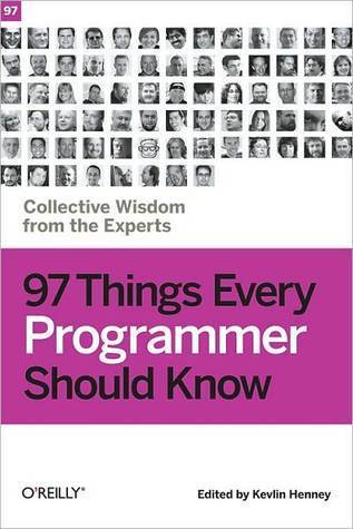 This is a book with 97 tips for programmers, each tip takes up two pages or less, written by different programmers (a few get more than one entry). Here's the problem: 2 pages isn't enough to say anything useful about anything. And taking 97 useless writings and concatenating them together doesn't create a useful one - the size limit of each entry prevents anything from being particularly valuable.