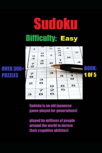 Sudoku - Easy Difficulty - Over 300+ Sudokus - Portable Book - For all ages Kids, Teens, Adults and Seniors - Mind Puzzle - Fun Puzzle