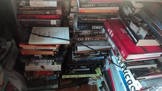 when i was reversing this bit, on all fours, back-crawling and trying to avoid these screws that stick out and kept scraping my back, i knocked over a book stack, causing a book avalanche, causing this book to fall on my head.