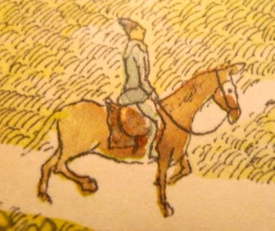 Overall, I enjoyed Anno's Journey and I really appreciated it more after I read the author's note and realized all the things he added, but for me it wasn't really a WOW book or anything that especially touched me. I thought it was interesting that Anno never got off his horse. I suppose part of it is that it was always easy to spot him that way, but I wondered if he mightn't have accomplished the same thing by wearing a more unique outfit or something (ala Waldo). It was just odd to me that he never got down to interact with any of the people/places--he was just passing through and observing.