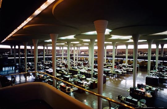 3) Jouer avec la tridimensionnalité des volumes. Dépasser l'enfermement de l'homme dans des boîtes à toutes les échelles. Partir des piliers, non du modèle de la boîte. Comme dans cet espace de bureaux :