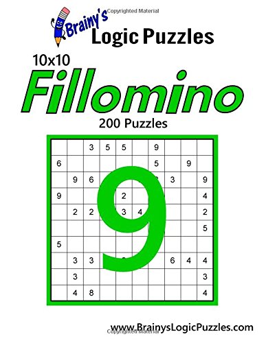 Fillomino is played on a rectangular grid; Some cells contain numbers. The object is to divide the playing field into blocks of arbitrary shape; each block should contain as many cells as indicated by a number in one of the unit cells. The blocks having the same size (number), should not touch horizontally or vertically. Cells which did not initially contain numbers may also be combined into blocks required to solve the puzzle. Volume #9 This book contains 200 10x10 puzzles, 4 per page. We are sure you will find these puzzles offer an entertaining yet effective way to exercise your brain and keep your mind sharp. All puzzles have been checked to ensure there is only one valid answer. We never duplicate a logic puzzle in any of our books. Our books are printed on high quality 60 lb paper. Find more pencil puzzle books on Brainy's website! www.BrainysLogicPuzzles.com