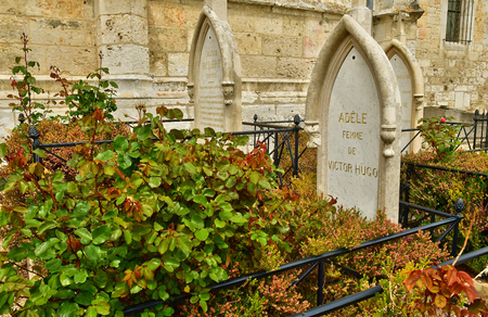 La tomba di Adèle Hugo nel cimitero di Villequier posta accanto a quella della figlia primogenita Léopoldine, morta incinta per annegamento a diciannove anni, pochi mesi dopo le nozze.