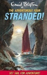 The Adventurous Four, not as many as the Famous Five and a little less interesting to read. Still a great book by Enid Blyton. The cover show the 4 children on top of a cliff on the island where the are stranded. Happy faces all around and Tom holding something to eat. Eating is as usual with this author a main theme in the story, so is being stranded, secret tunnels and caves, being taken prisoner etc Of course it was written in another time but still, it feels more artificial than the other series by Blyton, just as if these were written first and she believed she could do better by adding a dog. Boy-girl sterotypes, strong silent man, worried mothers and hard criminals make up the main cast. There is a lot to do about sailing but nothing technical, it is not a sailing instruction manual. Definitely worth reading in the category nostalgic entertainment, adventure and humor.
