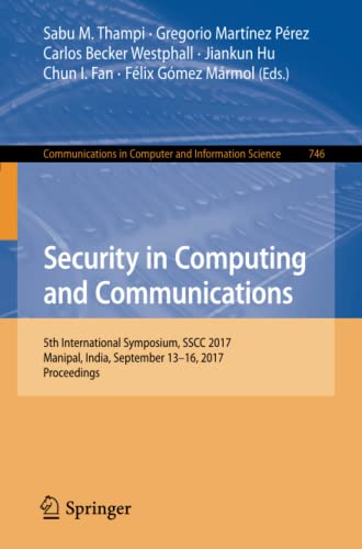 This book constitutes the refereed proceedings of the 5th International Symposium on Security in Computing and Communications, SSCC 2017, held in Manipal, India, in September 2017. The 21 revised full papers presented together with 13 short papers were carefully reviewed and selected from 84 submissions. The papers focus on topics such as cryptosystems, algorithms, primitives; security and privacy in networked systems; system and network security; steganography, visual cryptography, image forensics; applications security.