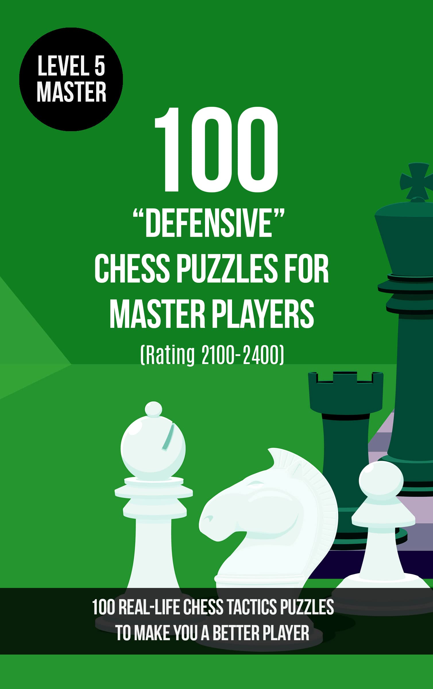 In 100 “Defensive” Chess Puzzles for Master Players (Rating 2100-2400) you’ll solve 100 chess strategy challenges by finding the precise move or sequence of moves needed to avoid mate, losing material, or another advantage for your opponent.