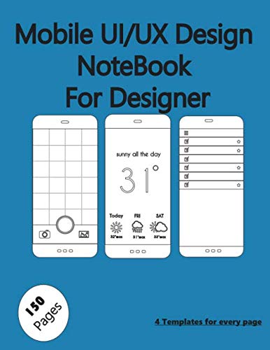 150 pages. 8.5 x 10 inches 6 mobile templates per page . 1 mobile template horizontal per page x Half Lined for witre notes. An excellent gift for both professionals app designers and developers .