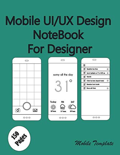 150 pages. 8.5 x 10 inches 6 mobile templates per page . 1 mobile template horizontal per page x Half Lined for witre notes. An excellent gift for both professionals app designers and developers .