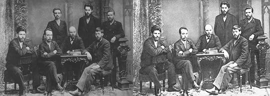 St Petersburg Union of Struggle for the Liberation of the Working Class, who published censored books like Bulgakov independently. Most of them were send to prison in Siberia or murdered. Maltschenko was killed by Stalins police and retouched from the picture after (left vs. right picture)