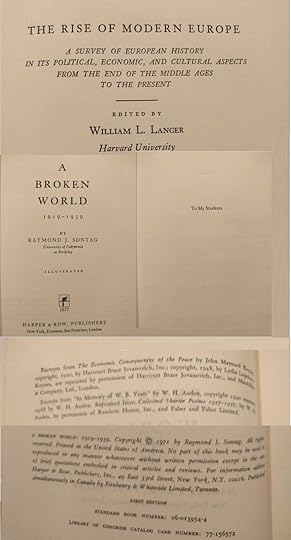 Somewhat dated but nevertheless still valuable as a resource on Europe between the two world wars. It is a general survey of that period. A quick read through its pages provides an accurate overview of the political, military, and economic forces at work that dominated the years after the Great War.