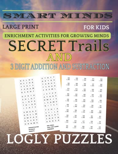 Smart Minds -Scret Trail And 3 Digit Addition And Subtraction: Math Book Scret Trail Puzzles ,Game Math; For Kids,,Positive Energy for Your Mind, Relax and Unwind. Great ... Mental Sharpness