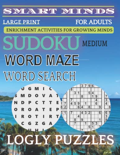 Smart Minds - 400 Medium Sudoku And Word search And Word Maze Puzzle Book Large Print For Adults: Brain Game Sudoku Puzzle Book For Adults ,,Positive ... Relax and Unwind. Great ... Mental Sharpness