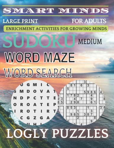 Smart Minds - 400 Medium Sudoku And Word search And Word Maze Puzzle Book Large Print For Adults: Brain Game Sudoku Puzzle Book For Adults ,,Positive ... Relax and Unwind. Great ... Mental Sharpness