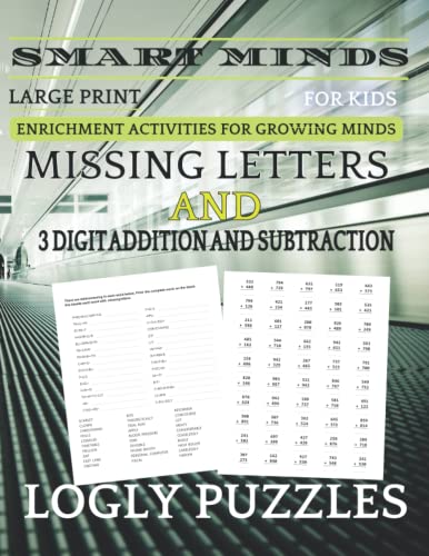 Smart Minds -Missing Letters And 3 Digit Addition And Subtraction Workbook For Kids: Math Book Missing Letters Workbook Puzzles , ; For ... ... Mental Sharpness