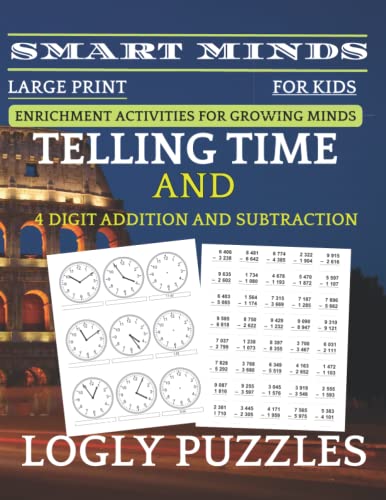 Smart Minds -Telling Time And 4 Digit Addition And Subtraction Workbook For Kids: Math Book How To Tell Time Workbook , Math; For Kids,,Positive ... Sharpness