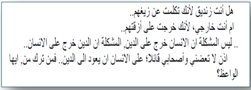 «ليس المهم أن تكون مسلمًا وإنما المهم الكيفية التي تُمارس بها اسلامك، ليس المهم أن تكون حافظًا للقرآن، المهم هو أن تحفظ قيمه حتى وإن جهلت كل حروفه.»
