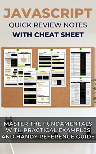 Concise notes on the core concepts of JavaScript, including variables, functions, loops, and more.Examples and code snippets that illustrate key concepts and best practices, making it easy to understand and apply what you've learned.A handy cheat sheet that summarizes key syntax and commands, so you can quickly look up information as needed.Whether you're a student, a developer, or just looking to improve your coding skills, this book is an essential resource for anyone working with JavaScript. So why wait? Start learning today and see how quickly you can master this powerful programming language!