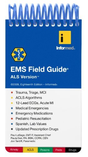 The 18th edition EMS Field Guide ALS Version contains a newly updated drug section along with enhanced illustrations for a better understanding of the material. This 3"x5" pocket-sized guide has color-coded tabs so that paramedics, nurses and physicians can easily look up patients' medications, check drug doses, quickly interpret 12-Lead EKGs and review the latest CPR and ACLS algorithms from the AHA. All Informed guides are waterproof, alcohol-fast and 'street tough'. Digital and iPhone application versions of this guide are now available for use on both handheld devices and computers.
