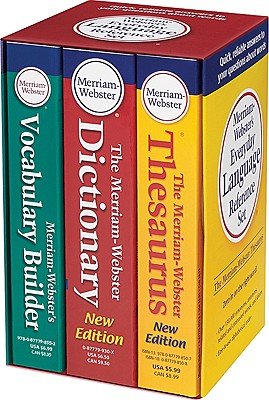An attractive, affordable reference set. Includes The Merriam-Webster Dictionary, The Merriam-Webster Thesaurus, and Merriam-Webster's Vocabulary Builder.