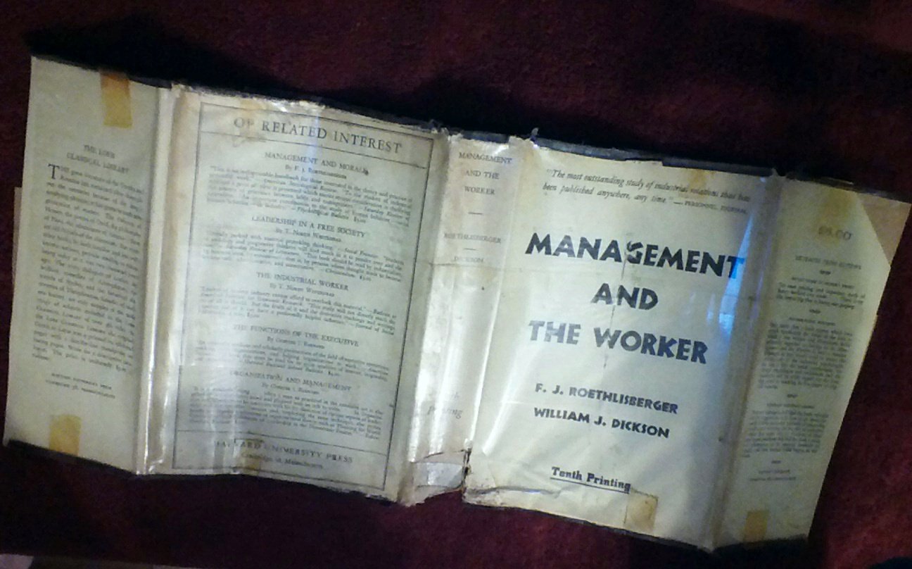Management and the Worker by Roethlishberger and Dickson, Harvard University Press 1950, Copyright 1939 by the President and Fellows of Harvard College, 10th Printing, 615 pages