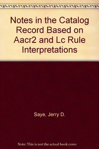 Notes in the Catalog Record Based on Aacr 2 and Lc Rule Interpretations by Jerry D. Saye