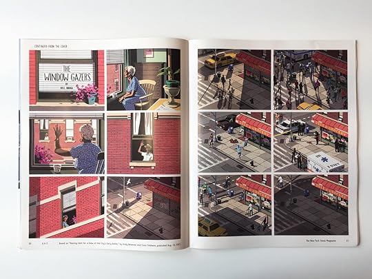 The story revolves around two elderly folks in the Bronx. Even though the comic has no words (a silent movie of sorts), its meaning especially after reading the article it was based on is exquisite. It prompts the feeling of serenity and solidarity one finds when looking out of a window onto the streets whose mood varies depending on the time of day. From being crowded, bustling and exuberant it can turn quiet and mellow. From the fights and squabbles that break out or the accidents which shatter the resolute peace, there are those moments of love and friendship which speak volumes. The art with fixed lines and solid faded colours adds to the cardboard cut-out re imagining of a realistic tale, one that would delight one's grandkids in the future.