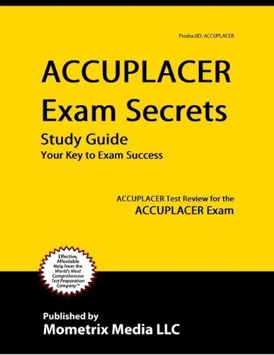 ***Includes Practice Test Questions***ACCUPLACER Exam Secrets helps you ace the ACCUPLACER Exam, without weeks and months of endless studying. Our comprehensive ACCUPLACER Exam Secrets study guide is written by our exam experts, who painstakingly researched every topic and concept that you need to know to ace your test. Our original research reveals specific weaknesses that you can exploit to increase your exam score more than you've ever imagined. ACCUPLACER Exam Secrets The 5 Secret Keys to ACCUPLACER Test Time is Your Greatest Enemy, Guessing is Not Guesswork, Practice Smarter, Not Harder, Prepare, Don't Procrastinate, Test Yourself; A comprehensive Sentence Skills review Simplicity is Bliss, Recognizing Parallelism, Understanding Grammar Type, Keys to Using Punctuation, Beware of Added Phrases, Clearing Up Word Confusion, Comparative Methods, Nonessential Sections, Maintaining the Flow, Serial Mistakes; A comprehensive Arithmetic, Elementary Algebra, and College-Level Mathematics review The Easiest Math Review You'll Ever Read, Solving for Variables, Breezing Through Word Problems, Keeping Probability Simple, Using the Right Formulas, Graphing for Success, Racing Through Ratios, Understanding Line Plotting, Mastering Difficult Problems; A comprehensive Reading Comprehension and English Proficiency review Determining the Relationships, Making Strategic Eliminations, Recognizing Switchback Words, Understanding Word Types, Finding the Right Opportunities, When Truth Doesn't Equal Correctness, Avoiding the Trap of Familiarity, Making Logic Work for You, Skimming Techniques to Save Time; A comprehensive Essay review Approaching a Topic, Brainstorming for Success, Picking a Main Idea, Starting Your Engines, Strength Through Diversity, Weeding Your Garden, Creating a Logical Flow, Avoiding the Panic, and much more...