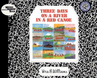A child sees a red canoe for sale. The family buys it and the child, Mom, Aunt Rosie, and cousin Sam also plan to take a canoe trip on the river. They map out the trip and make plans, purchasing all of the supplies they will need on their trip (which you can see in an illustration). Then the child chronicles the family's trip and adventures down the river. The colored pencil illustrations are detailed. Vera Williams frequently uses maps and diagrams to give the reader a clear sense of their trip's path and what they experienced on the way. As the trip goes on the child explains how they traverse a waterfall, wash dishes, cook along the river, the fish and other wildlife seen, and describes other adventures experienced. This story reads smoothly but also has lots of details that you can learn or skip over, such as reading how to tie "two half hitches" (to secure the canoe?), cook dumplings and fruit stew, and set up a tent. Really informative and interesting book that just might make you want to go on your own canoeing or camping trip.