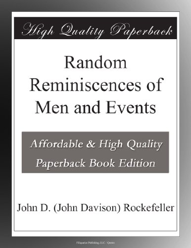 Random Reminiscences of Men and Events is presented here in a high quality paperback edition. This popular classic work by John D. (John Davison) Rockefeller is in the English language, and may not include graphics or images from the original edition. If you enjoy the works of John D. (John Davison) Rockefeller then we highly recommend this publication for your book collection.