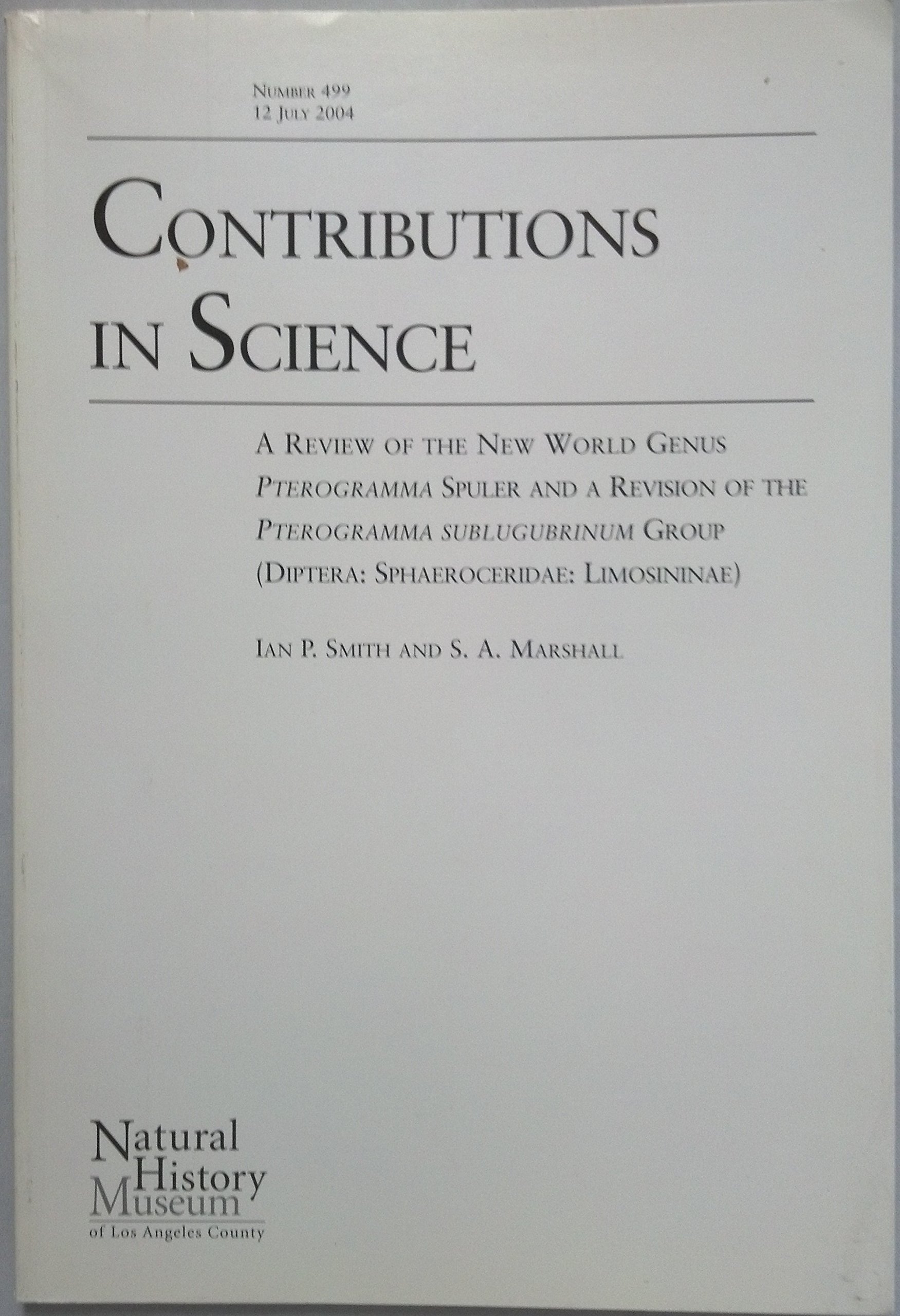 A monograph on the New World fly Genus Pterogramma Spuler with revision of the Pterogramma sublubrinum group.