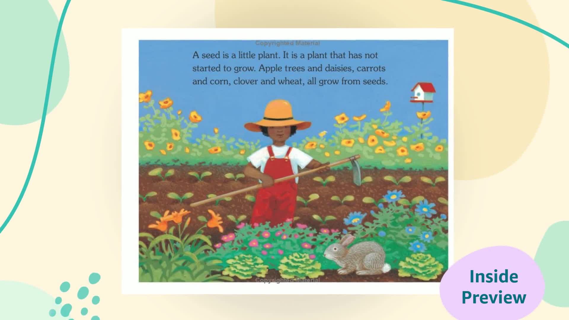 This book has realistic pictures that show different types of seeds and the process of how a seed grows into something else. The story provides information on how to plant a seed and help it grow. It also has cross-section pictures of the seed as it grows; this allows students to clearly understand the process a seed goes through to become a plant.