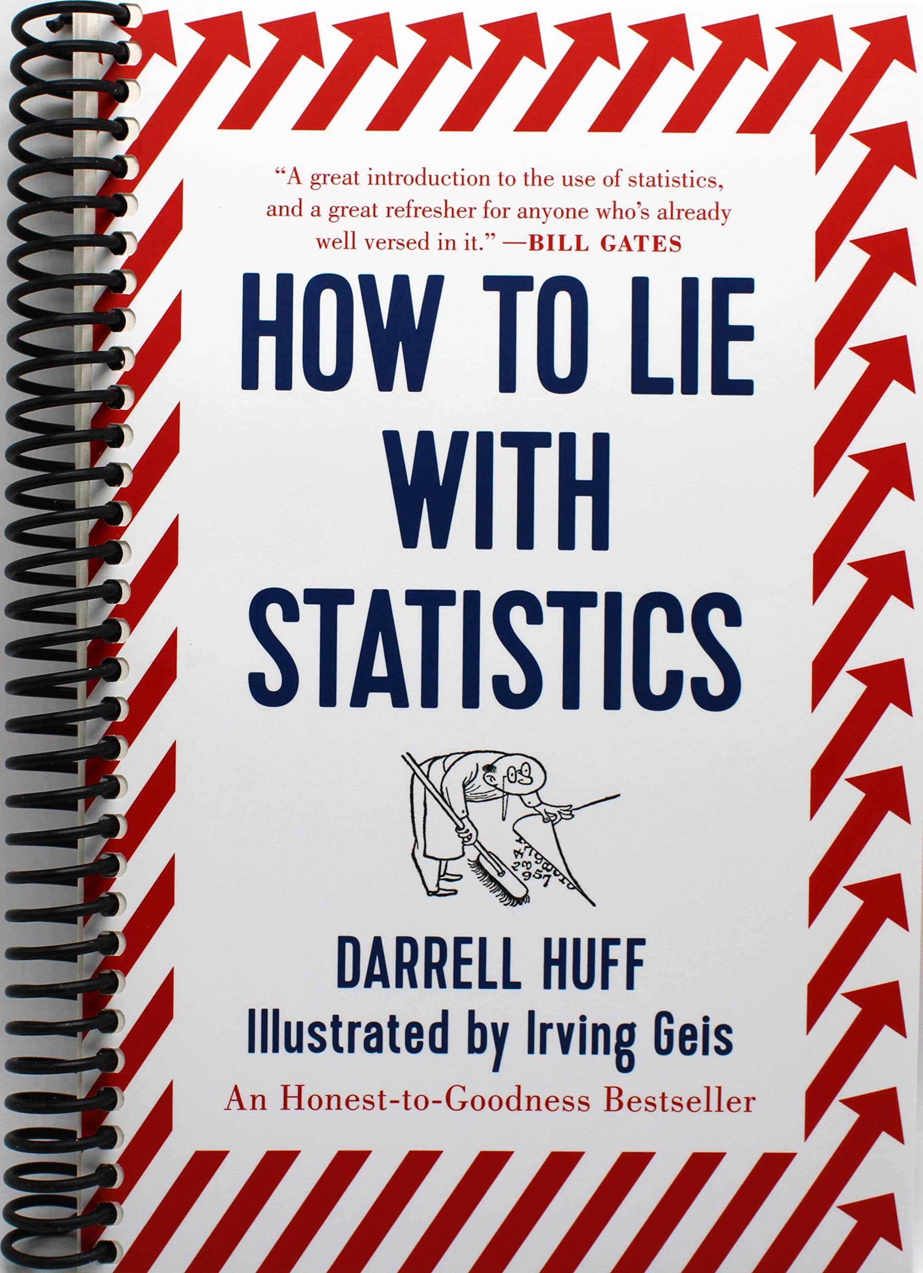 "The secret language of statistics, so appealing in a fact-minded culture, is employed to sensationalize, inflate, confuse, and oversimplify. Statistical methods and statistical terms are necessary in reporting the mass data of social and economic trends, business conditions, 'opinion polls', the census. But without writers who use the words with honesty and understanding and readers who know what they mean, the result can only be semantic nonsense… This book is a sort of primer in ways to use statistics to deceive. It may seem altogether too much like a manual for swindlers. Perhaps I can justify it in the manner of the retired burglar whose published reminiscences amounted to a graduate course in how to pick a lock and muffle a footfall: The crooks already know these tricks; honest men must learn them in self-defense." (10-11)I never cared much for statistics; I slid through Methods & Statistics 1, 2, and 3 relatively untouched, until the first time I did my own research and had to analyze the data I had so diligently collected. That was the point at which statistical analyses became meaningful to me—I had a theory and I was looking to see whether there was any evidence for it. The data itself means nothing, of course. Numbers do not mean anything on their own. What you do with the numbers, how you expose (non-)relationships between them, is when things get interesting. And tricky—as this little book sets out to show.