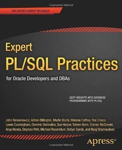 Expert PL/SQL Practices is for PL/SQL developers who want to develop deep expertise in key aspects of the language and its use in database programming. Any developer writing code against Oracle's class-leading database engine will find value from the collected wisdom in this book. Some knowledge of PL/SQL is assumed. Readers should at least be past the beginning stage with the language. Table of Contents Do Not Use Dynamic Handling the Unknown PL/SQL and Parallel Processing Warnings and Conditional Compilation PL/SQL Unit Testing Bulk SQL Operations Know Your Code Contract-Oriented Programming PL/SQL from SQL Choosing the Right Cursor PL/SQL Programming in the Large Evolutionary Data Modeling Profiling for Performance Coding Conventions and Error Handling Dependencies and Invalidations