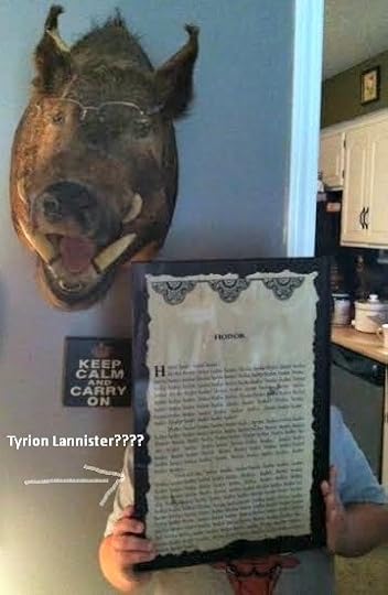 By now you all know I’m reading the box set and not giving a real review until I’m done with the hole batch and yada, yada, yada. That being restated, in place of a review (which would be all: “Why do people not like this one? I mean, yeah, book 3 was nearly impossible to beat, but this one was damn solid writing. Not to mention, how many authors can start a freaking remodel of a series and make it work like this? Also, who would have ever thought I would love a Lannister? And rantrantrantrantr