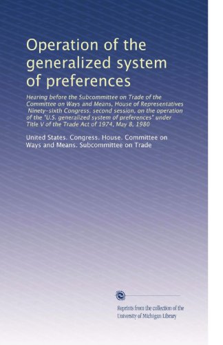 Operation of the generalized system of preferences: Hearing before the Subcommittee on Tra...